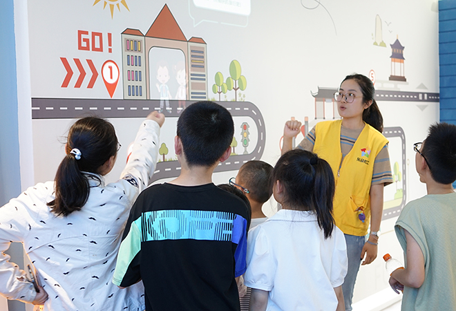 活动参观了金港文化中心文化馆、综合图书馆、美术馆、少年宫,并开展了“心理格子铺”活动,主要以心理集市的形式,从同伴交往、重塑信心、压力管理、情绪管理四个方面引导青少年关注自身的心理健康状态,找到合适的方式面对并解决遇到的心理困境。最后带领孩子们参观了青少年法治教育基地,生动形象的现场教学,游戏体验的互动教学,让孩子们在快乐中学习提升安全保护意识。