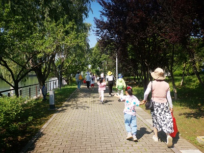 五月初夏,阳光明媚,花香四溢,参加活动的20组家庭,兴致勃勃地来到胥江欢乐广场集合,今天的健步走路线从胥江欢乐广场出发,环步道一周,途中设置了寻宝环节,我们提前在步道两边隐藏了绿丝带,找到绿丝带的家庭,将获得一份精美礼物。在美丽的胥江步道,一边欣赏两岸的美丽风景,一边享受着健康运动带来的身心愉悦,大家神采奕奕,精神抖擞地沿着健身步道快步向前,孩子们的小手紧紧牵着父母们的大手,一路上欢呼雀跃,充满着欢声笑语。