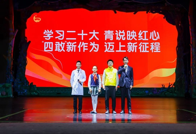 由苏州高新区团委联合区教育局开展的“学习二十大 青说映红心”短视频征集活动自启动以来获得全区200余名优秀青年党员、团员、少先队员的踊跃参与。现场,90后青年党员代表赵易芾、95后共青团员代表叶子轶、00后乡村振兴大学生志愿者代表邵睿哲及10后少先队员代表肖钰馨进行《学习二十大 青说映红心》党、团、队员情景演说。为提振全区青少年的“四敢”精气神,现场还举行了《你想成为谁》的青春演绎,分别进行了主题短片首映及中国兵器214所青年科研人员代表王浚宇的TED演讲。