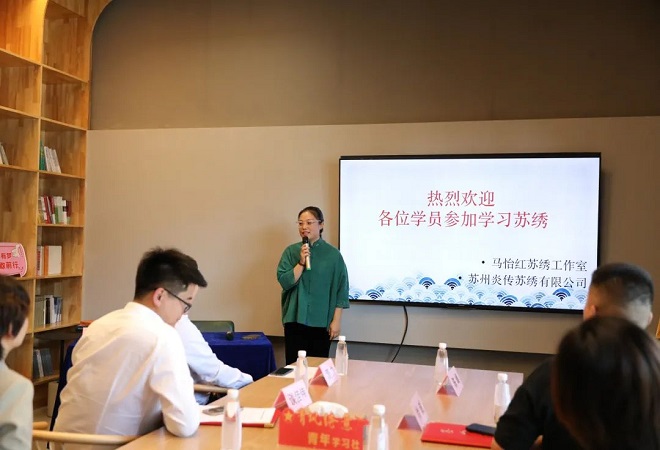 市十佳新兴青年、高新区优秀团支部书记、非遗苏绣传承人马怡红依托“青社学堂”带领大家共同体验刺绣的独特魅力。
